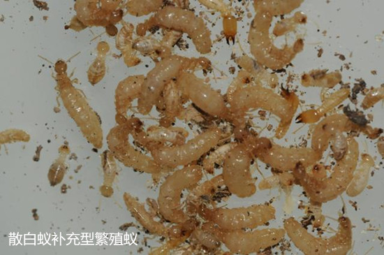 稱為補(bǔ)充繁殖型。白蟻群體久居住在一個地方,常造成食料不足,迫使部分工蟻和少量兵蟻離開主群體遠(yuǎn)去尋食找水。隨著時間推移和距離的遠(yuǎn)離,再加上其它外界因素的影響,結(jié)果使它們與主群體完全失去聯(lián)系。這時它們即組成小群體,然后群體內(nèi)部就能產(chǎn)生補(bǔ)充型蟻王和蟻后,而成為獨立群體。另外,當(dāng)原始蟻王、蟻后死亡后,短翅型蟻王、蟻后作為補(bǔ)充出現(xiàn),延續(xù)整個白蟻群體的繁衍。
