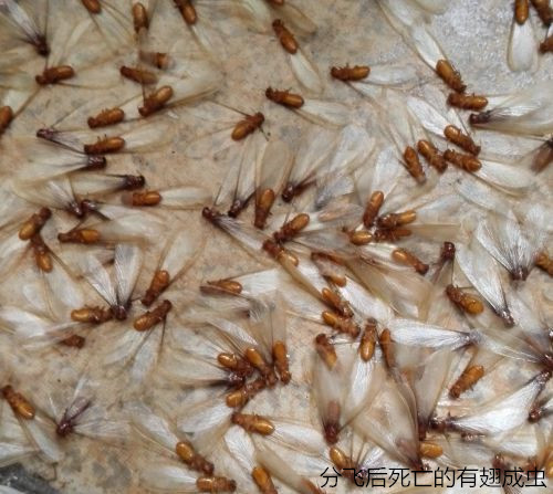 或有翅型:體軀骨化,黃、褐或黑色,有兩對發(fā)達(dá)的翅。每年4-6月是其分飛高峰期,特別是在春夏雨后悶熱時,大量長翅繁殖蟻從蟻巢中飛出,在離巢不遠(yuǎn)處的建筑物附近低飛,飛行時間很短,這種現(xiàn)象稱為婚飛或群飛(分群)。群蟻在低空飛舞,好像在開舞會,各自毫無拘束地自由選擇對象。"情投意合者"飛落地面,各自脫掉翅膀,雌雄成雙追逐,通常為雌前雄后,完成"婚配"大事。配對后的雌雄成蟲經(jīng)一段時間后,便開始尋找合適場所,建筑新巢"定居"。入穴后,雄蟲常用口器舔舐雌蟲的腹部,有時雌雄蟲彼此舔舐,然后產(chǎn)卵,繁殖后代,另立新的群體。這對"新婚"的雌雄蟻,就是未來新群體的母蟻和父蟻,也就是新群體中的蟻后和蟻王。大多情況下,這對伴侶終身過著"一夫一妻制"的文明社會生活。但不是婚飛中的所有個體都能成雙建立新群,當(dāng)它們大量飛出時,常被各種鳥類、捕食性昆蟲或其他動物吃掉,往往只有其中的少數(shù)能夠幸存下來,但盡管是少數(shù),也足以維持其種族繁衍,并造成對木質(zhì)建筑物的危害的了,王后躺在王室中可是專門"生育"的,到一定時期又有成蟲出飛建立新的群體。